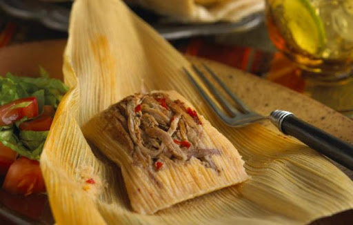 Spread 1–2 tbsp. masa dough on each softened husk. Place 1–2 tbsp. shredded pork in the center. Fold the sides of each husk into the center. Tie each with butcher’s twine. Place the filled husks in a steamer. Cover with a damp cloth or more soaked corn husks. Steam for 1 hour. Serve hot.