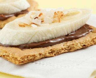 A graham cracker smeared with Nutella and topped with banana and coconut is a light way to satisfy your sweet tooth.