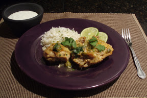 This is an Anne Burrell reciope. It's easy. Not quick (bone-in chicken takes time to cook). There are a few simple steps. I wouldn't take any short cuts. The results are absolute deliciousness. You start off by grilling the tomatillos and jalapenos. This adds a slightly sweet, smokey flavor and takes everything to another level. You end up with tender chicken covered in a delicately smooth sauce with hints of heat and something almost sweet in the end. I think what surprised me here was that the sauce doesn't look delicate with those little chunks of tomatillos and onions...but when it hits your pallet, you want to close your eyes and go...mmmmm