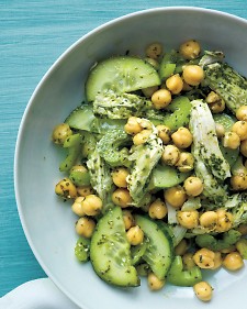 In a bowl, mix together chicken, cucumber, celery, and chickpeas. Add Basic Basil Pesto and a squeeze of lemon. Season with salt and pepper.