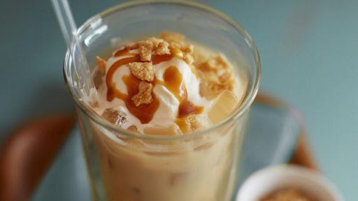 3 In 2-quart glass pitcher, stir together cold coffee and milk mixture. To serve, pour into glasses filled with ice; top with whipped cream, caramel sauce and crushed cereal.