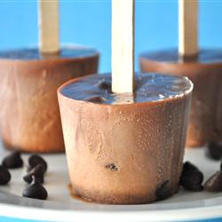 Stir the chocolate chips into the cooled chocolate mixture. Pour into molds and freeze until firm, about 4 hours.
