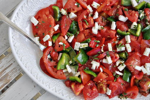 Heirloom Tomato Salad with Feta & Oregano Flowers