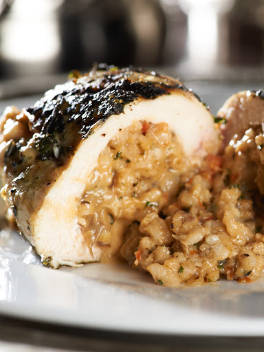 "We "summerized" this classic with a cheesy rice stuffing. And, instead of oven-baking, we prepared these breasts specifically for the grill." —David