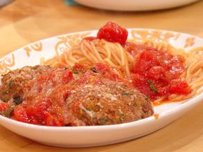 Cook some spaghetti to al dente or char some bread to pass at the table. If you make the spaghetti, drain it and toss with a cup of reserved starchy water, some tomato sauce, butter and extra cheese. Pass remaining sauce to tables with stuffed eggplant and chicken parm.