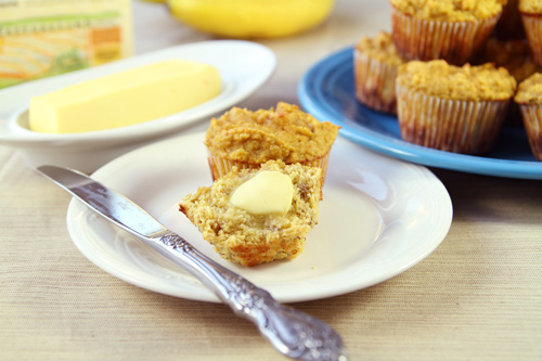 Whisk in coconut flour mixture and bananas until well blended. Batter will be thick. Divide batter among the muffin tins lined with paper liners.