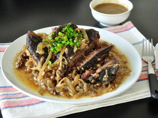 Add the bouillon cubes to the hot water and stir to dissolve; add that to the skillet along with the beer, brown sugar, mustard, and vinegar; stir to mix well.