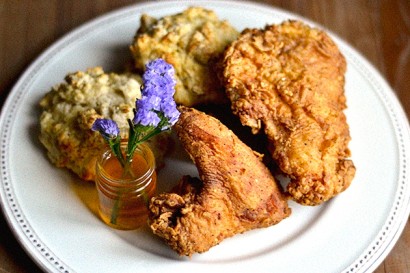 Fried Chicken with Buttermilk Biscuits and Jalapeño Honey