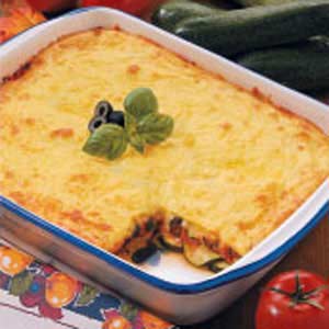 Whisk eggs and Parmesan cheese; pour over zucchini. Bake, uncovered, at 375° for 25-30 minutes or until a knife inserted near the center comes out clean. Let stand for 15 minutes before serving. Yield: 12-16 servings.
