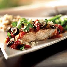 3.) Place fish in prepared baking dish; season both sides with salt and pepper. Spoon tomato mixture over fish. Bake 10 minutes or until fish flakes easily with a fork. Remove from the oven; sprinkle with feta and parsley. Serve.
