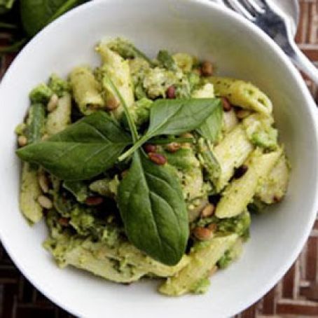 Divide the pasta into 6 portions and enjoy topped with the reserved pine nuts and a few extra baby spinach leaves.