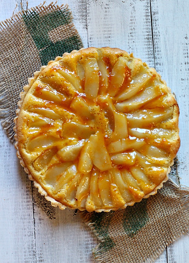 A beautiful work of art, this French pear tart with Frangipane is an elegant pear dessert.