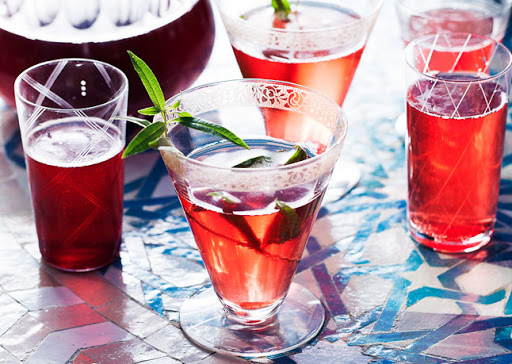 We call this a Persian Kir Royale—and can think of no better way to start a meal. This recipe yields more syrup than you'll need; use the surplus for fruity nonalcoholic spritzers or drizzle it over ice cream.