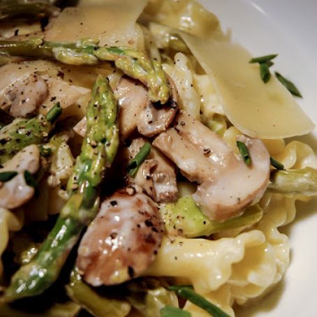 A zesty lemon cream sauce is the perfect complement to fresh asparagus and crimini mushrooms.