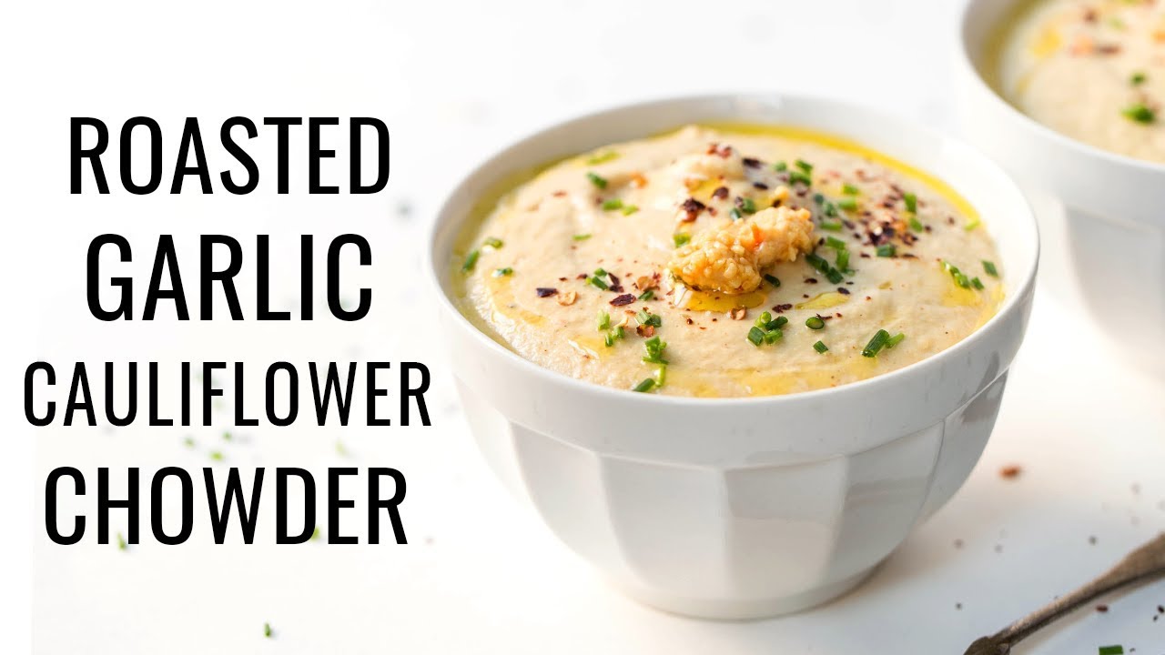 Roasted Garlic Cauliflower Chowder-Vegan