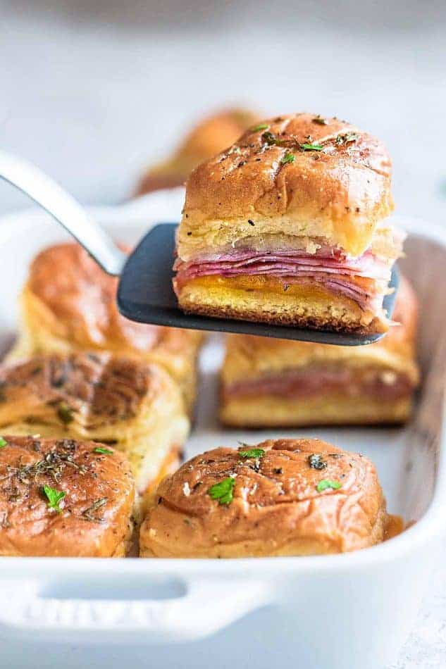 Slice into individual sliders and serve immediately with a sprinkle of grated Parmesan, if desired. Sliders are best warm and fresh.