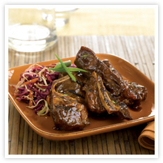 Combine hoisin sauce, soy sauce, green onions and garlic powder; pour over ribs in large plastic food storage bag. Press air out of bag; close top securely. Turn bag over several times to coat both sides of ribs. Refrigerate 1 hour; turn bag over and refrigerate 1 hour longer. Grill ribs over medium-hot fire 45 to 60 minutes or until done, turning ribs over occasionally. (Or bake ribs, meaty side up, in large, shallow foil-lined baking pan in 325°F oven 1 ½ to 2 hours, or until done, turning over every 30 minutes.)