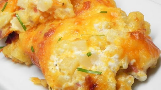 Bake in the preheated oven for 45 minutes. Remove foil; sprinkle remaining Cheddar cheese evenly across potatoes. Bake until cheese is bubble and lightly browned around the edges, about 15 minutes.
