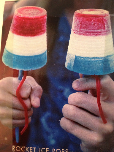 Lift foil on cups just enough to insert funnel; pour berry blue gelatin ( about 1/4 C each) on white layer.