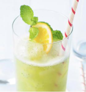 Add a straw and garnish each glass with a fresh mint sprig and a slice of lemon. Makes 4 servings.