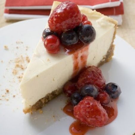 Optional topping: 3 cups sliced strawberries, raspberries, blackberries or mixed berries tossed with two tablespoons sugar. Let mixture sit in the refrigerator for at least an hour so the berries get nice and juicy. Spoon desired amount of topping over a slice of cheesecake before serving.