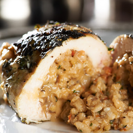 - “We “summerized” this classic with a cheesy rice stuffing. And, instead of oven-baking, we prepared these breasts specifically for the grill.” —David