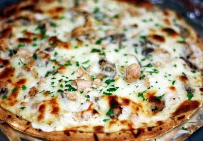 2. Place crust on pizza pan. Spread the Alfredo sauce over crust.