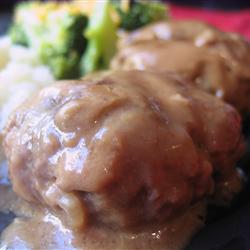 In a large bowl, mix together the ground beef, onion soup mix, bread crumbs, and milk using your hands. Shape into 8 patties.