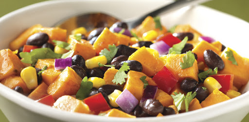 Add the corn, black beans, red onion, bell pepper, cilantro and chilled sweet potatoes to the vinaigrette. Toss until well combined.