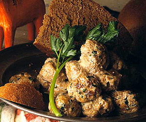 1. In a mixing bowl soak the bread crumbs in 2/3 cup half-and-half for 5 minutes. Add egg, onion, parsley, salt, ginger, and nutmeg. Add ground meats; mix well. Shape into 1- to 1-1/4-inch meatballs.