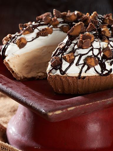 Before serving, drizzle some chocolate sauce and chopped chocolate peanut butter cups on top.