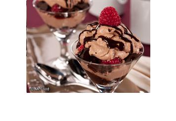 Beat cream in a small mixing bowl at high speed of an electric beater until stiff peaks form fold in chocolate sauce.