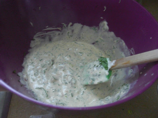As you may have heard, Texan's tend to want to dip everything in Ranch Dressing. When I have meetings at hotels, I try to put some sort of vinaigrette salad dressing on the table along with...you guess it... Ranch. I like to dress up Ranch at my house. Here is a little something different than my Jalapeno Ranch Dressing. For Creamy Chipotle Ranch Dressing you will need the following ingredients: garlic, salt, mayo, buttermilk, chipotle peppers in adobe, cilantro, scallions and lime zest.