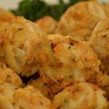 Bake crab cakes in a 350 degree oven until golden on top and set, about 20 minutes. Cool in pan 5 minutes. Gently lift each crab cake out of the pan with a fork onto a serving platter. (Can be made 2 hours ahead. Arrange on baking sheet, let stand at room temperature. Rewarm in a 350 degree oven for 5-6 minutes.)