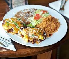 On each tortilla, in order spread 2 Tbsp. refried beans, 2 tbsp. chorizo, 1 egg, 1/2 cup Chile Verde, and 1/4 cup Mexican cheese blend. Set 2 of these side by side on the plate. Add one serving of rice and refried beans. Top beans with Queso Blanco. Separate the servings with shredded lettuce topped with diced tomotoes. Put dollip of guacamole in the center of the plate. Finally frost the huevos with the sour cream and sprinkle with Cilantro.