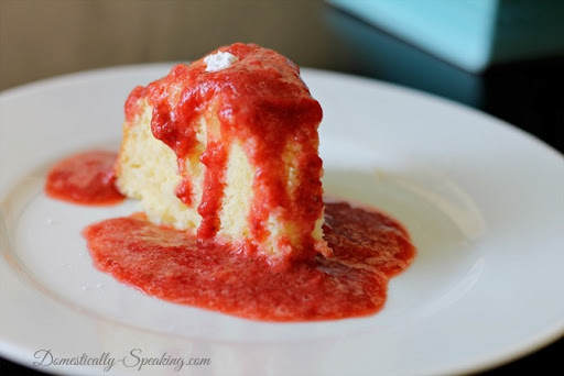 For the strawberry syrup I added 3 cups of frozen strawberries, 1/4 cup of sugar, the juice of 1/2 of a lemon and 1 teaspoon of vanilla in a saucepan. Heat on medium low until the berries are softened. Let the strawberries cool and then puree in the blender.