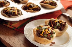 SPOON meat mixture into biscuit cups; press into cups with back of spoon. (Filling will be mounded.)