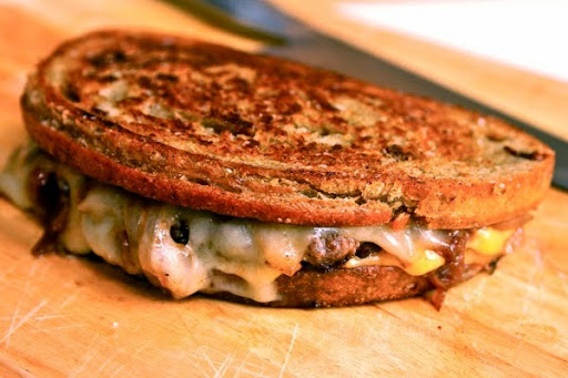 Divide onion mixture evenly between cheese-topped toast slices. Add burger patties to slices with American cheese and close sandwiches.