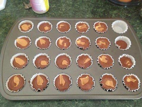 2. Drop tablespoonfuls of chocolate mixture into paper-lined muffin cups. Top each with a tablespoon of natural peanut butter ; top with another tablespoonful of chocolate mixture.