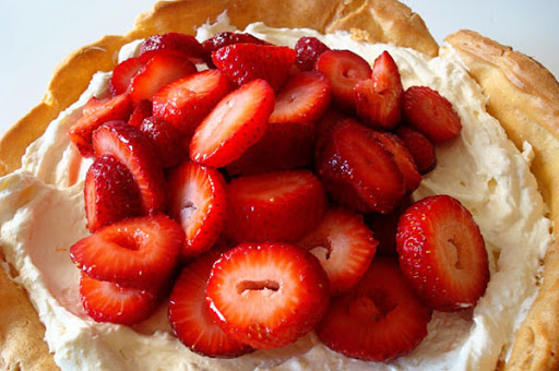 For the cream cheese mixture, beat the cream cheese until smooth. Gradually add the powdered sugar (if you want to ensure there are no lumps, sift the powdered sugar into the cream cheese) and beat with the cream cheese until mixture is smooth and light. Add the remaining ingredients and beat until stiff peaks form. Spread onto the cooled cream puff shell.