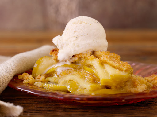 Bake for 45 minutes, or until the apples are tender, the sauce is bubbly, and the crumbs are nicely browned. Serve hot with a scoop of ice cream, if desired.