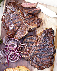 - 2 T-bone steaks, cut 1 inch thick (3 1/4 pounds total), at room temperature