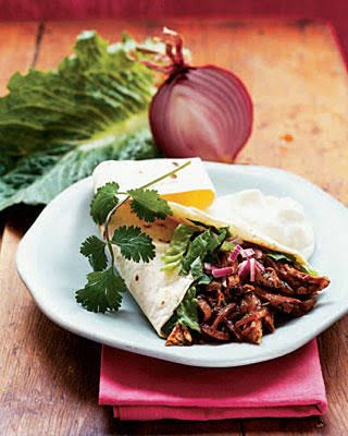Rolled up in warmed burrito-size flour tortillas, or serve in taco shells or on burger buns. Shredded lettuce, diced red onion and sour cream are great toppings.