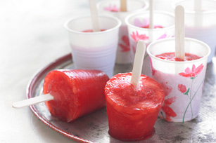 COVER cups with foil; insert wooden pop stick into center of each for handle. Freeze 2 hours or until firm.
