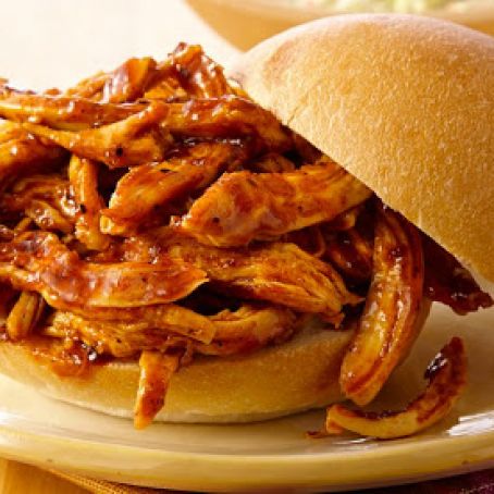 Shred chicken using 2 forks. Return chicken to slow cooker; mix and heat with sauce before serving. Serve on sandwich rolls, if desired.
