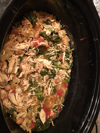 Cook on high 3-4 hours, or on low 6-7 hours. Add kale if desired