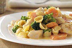 ADD Shells, milk and water; stir. Bring to boil; cover. Simmer on medium-low heat 10 min. Stir in broccoli and carrots; cook, covered, 5 min. Remove from heat.