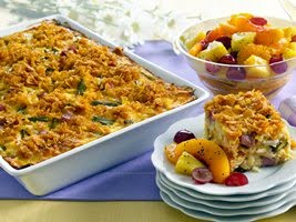 4. Sprinkle cornflake mixture over partially baked casserole. Bake uncovered 30 to 35 minutes longer or until knife inserted in center comes out clean and thermometer inserted in center reads 160°F. Remove from oven; let stand 15 minutes before serving.