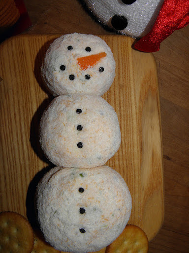 Divide mixture into 3 different sized balls to make the body. Coat each ball in Parmesan cheese. Place peppercorns in for eyes, mouth and buttons.