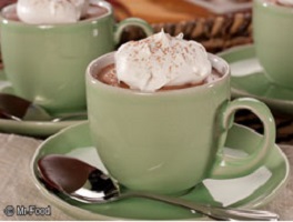 2. In a blender, combine chocolate chips, sugar, and coffee powder. Pour hot milk into blender and blend until smooth; set aside to cool.